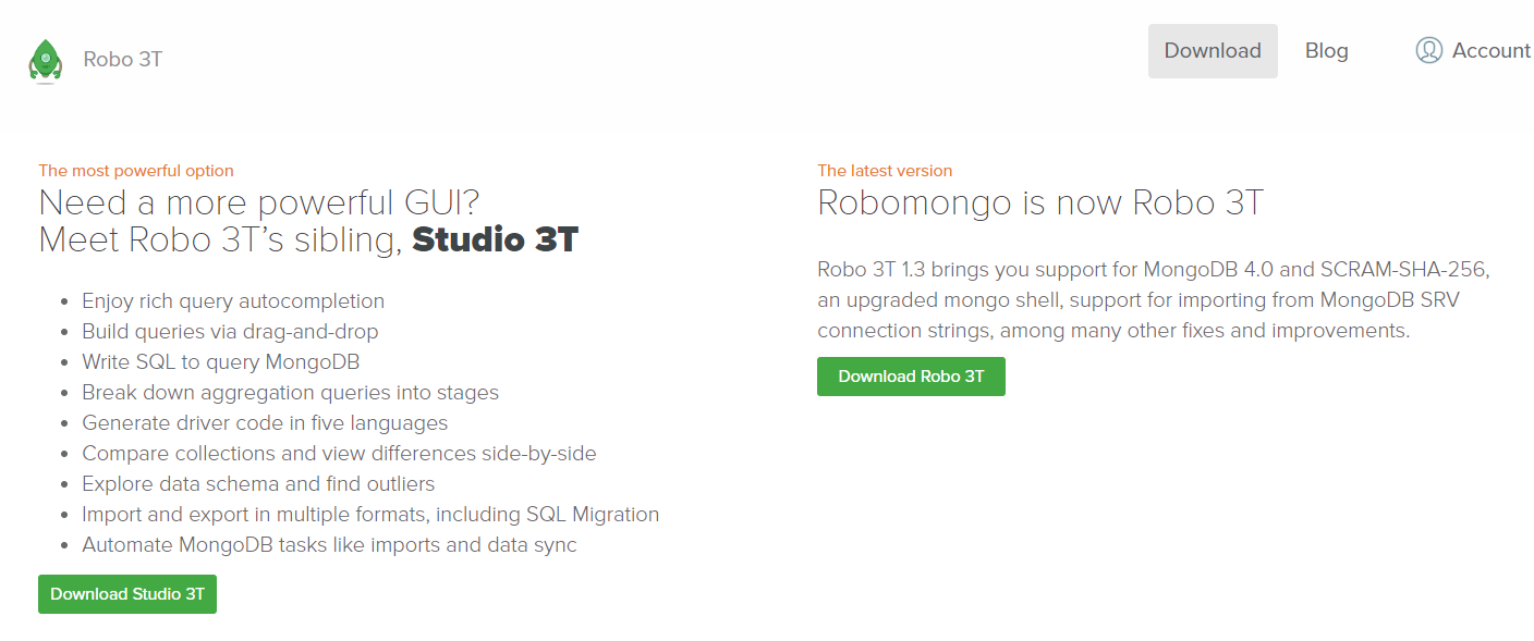 Studio 3T와 Robo 3T가 있는데, 여기서는 Robo3T를 다운로드 한다.