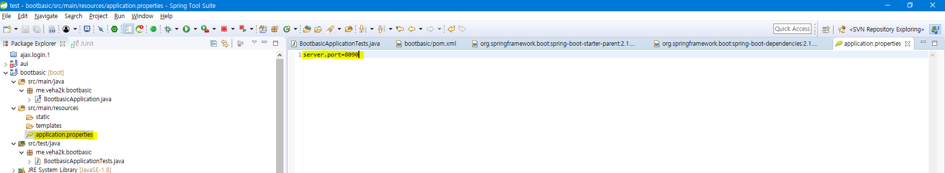 src/main/resources/application.properties : Spring boot property 값들을 모아 놓은 파일