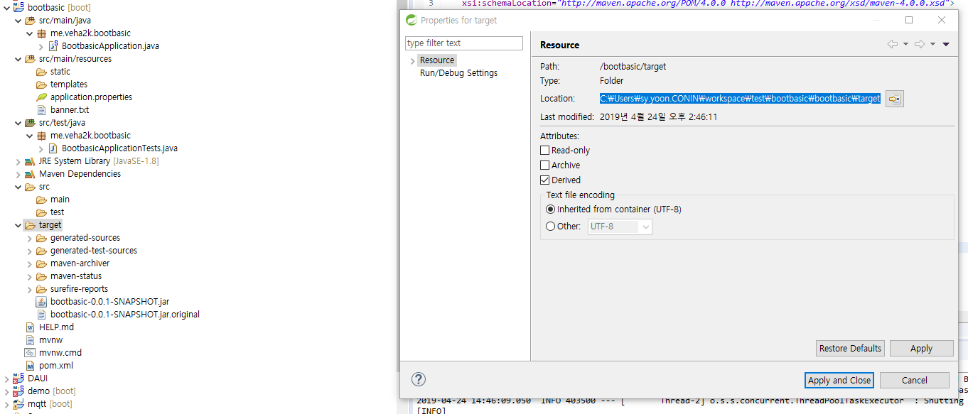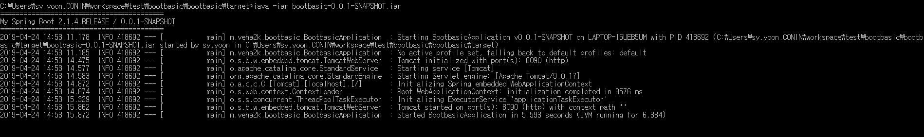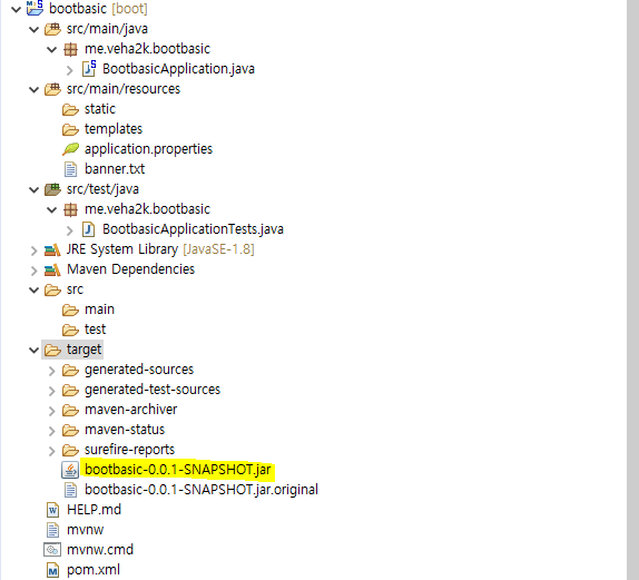 target 폴더 밑에 project name-application version.jar 파일이 생성되었음을 확인할 수 있다.