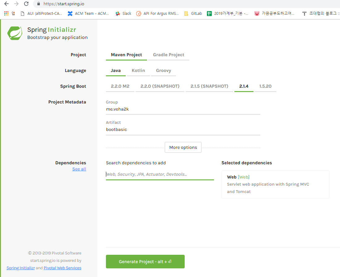 2. 위 입력한 후 Generate Project 버튼 클릭한다.