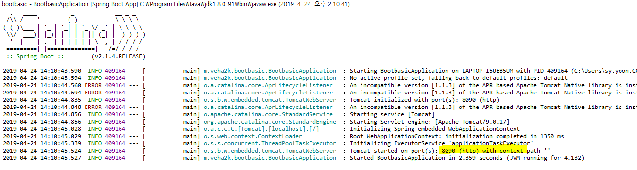 저장 후 spring boot 재시작하면 로그에 port가 변경되어 찍히는것을 확인할 수 있다.