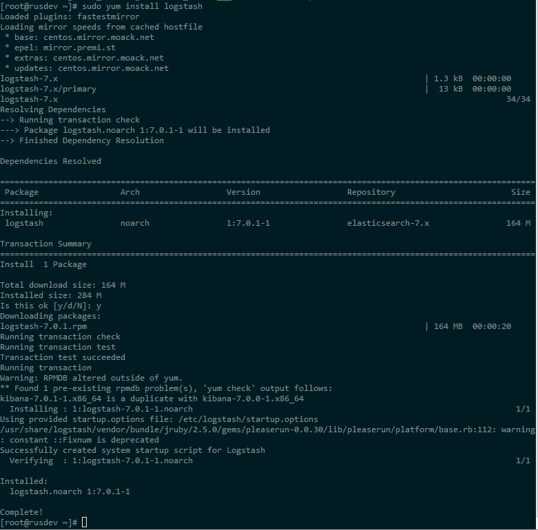 $ sudo rpm --install logstash-7.0.1.rpm7.0.1-x86_64.rpm