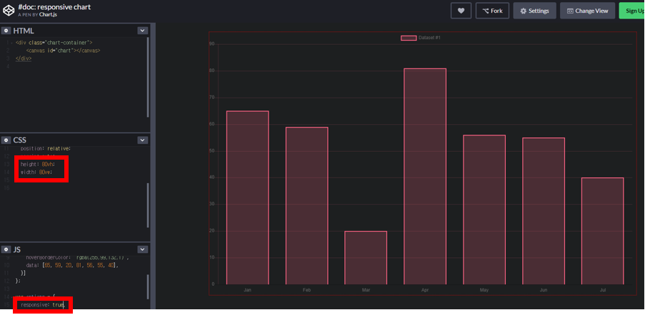 | responsive | boolean | true | 값이 true이면 chart의 canvas size를 resizing할 수있다. |